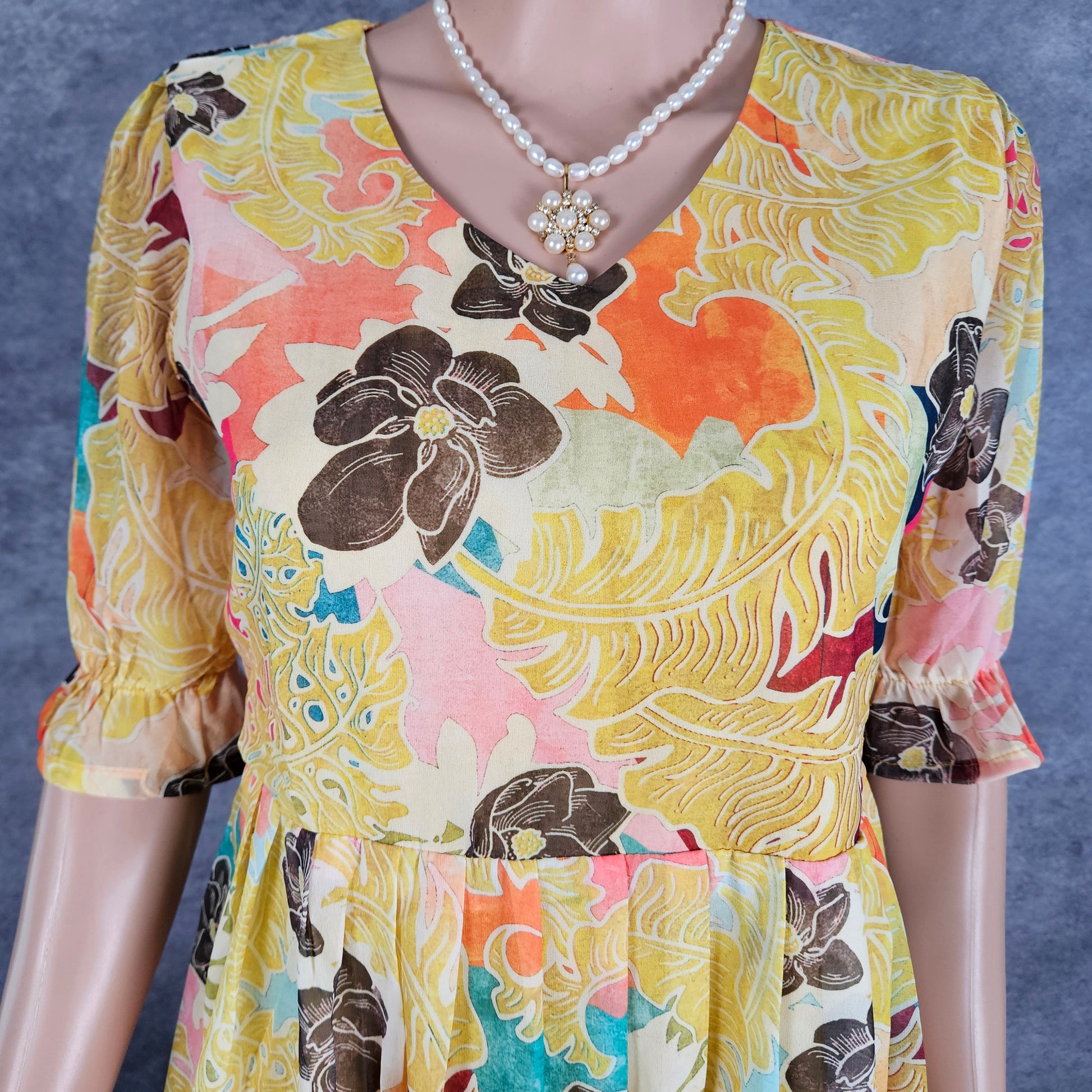 Bolt Yellow Black Floral Georgette Frock