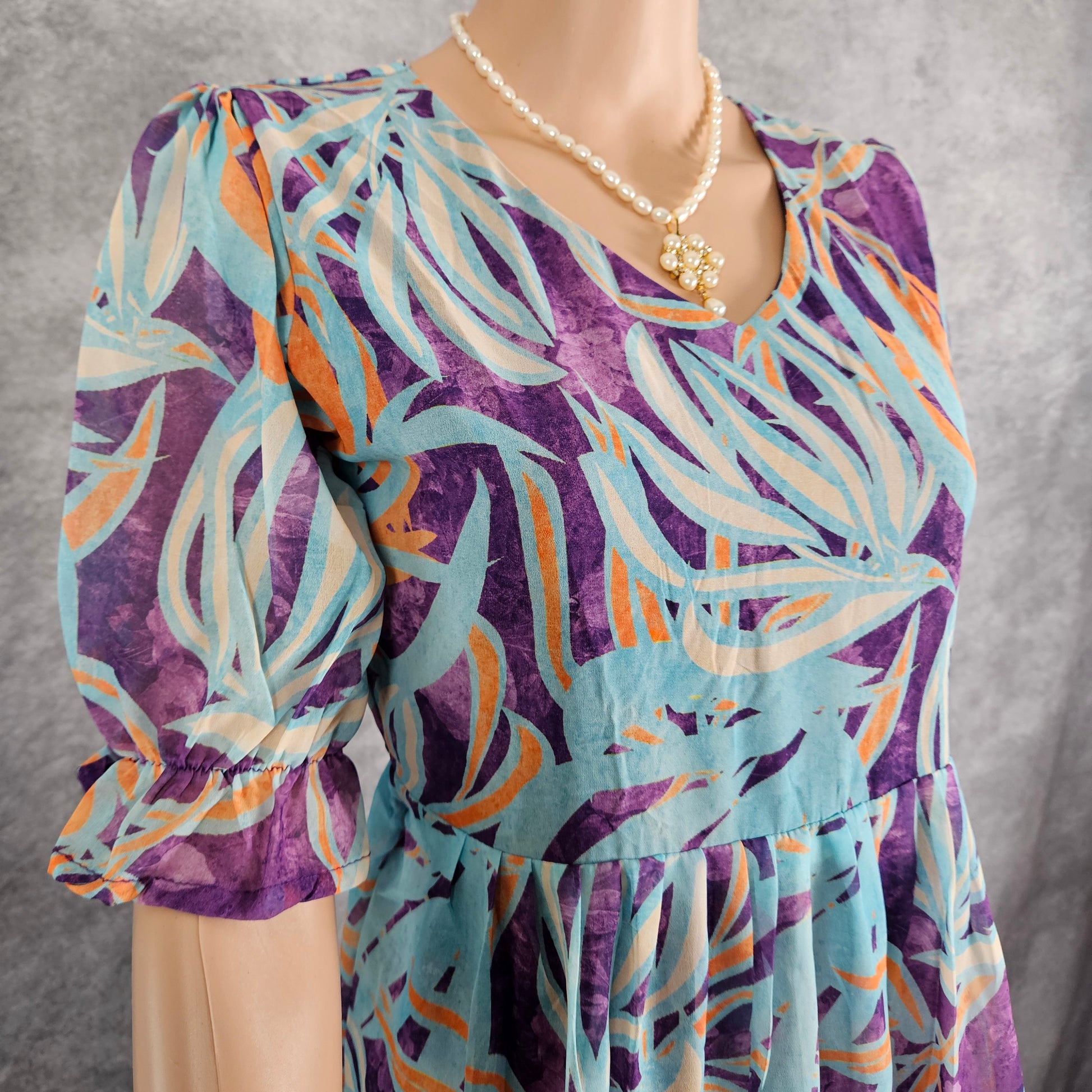 Make a bold statement in the Capri Blue/Purple Georgette Frock. Featuring a captivating blend of blue and purple hues, this lightweight georgette dress flows with confidence and flair. Its striking color fusion and elegant cut are designed to showcase your fearless style and leave a lasting impression wherever you go.