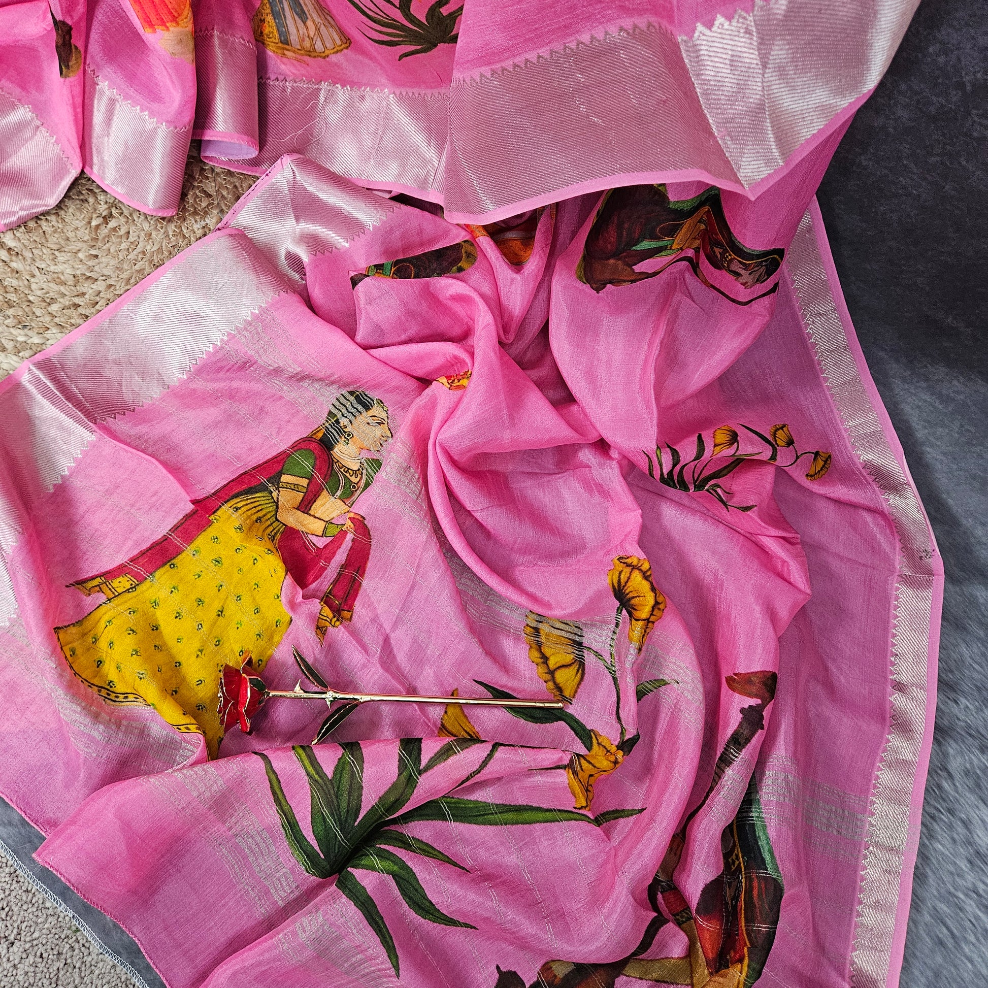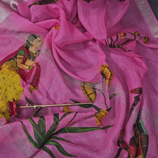 Add a splash of joy to your wardrobe with this Carnation Pink Mangalagiri Saree! Lightweight and comfortable, its vibrant pink shade brings an irresistible charm that's perfect for both casual days and festive nights. Crafted with care, this saree lets you twirl and shine with effortless grace. Ready to brighten your style? This saree is your new favorite dance partner!