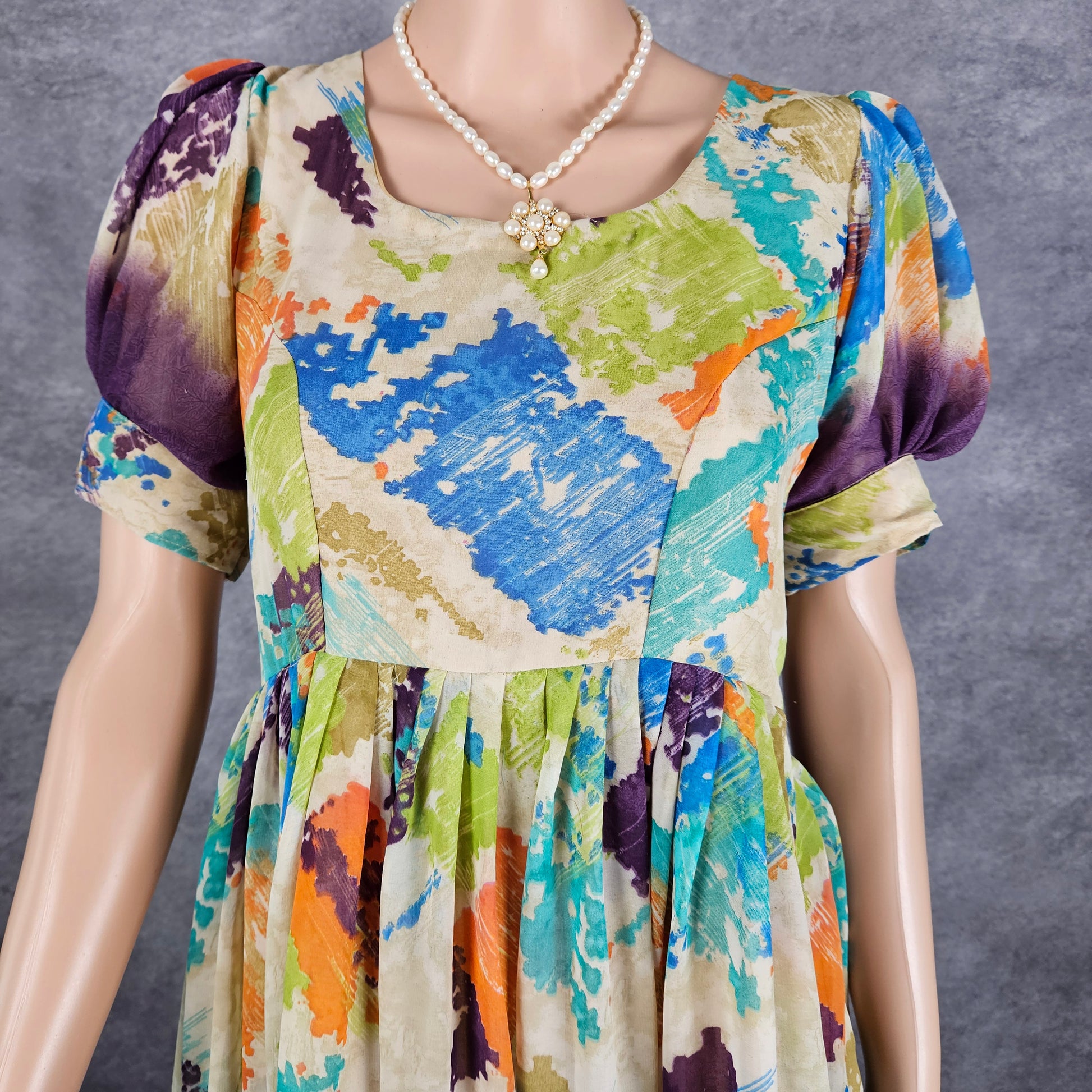Celebrate your vibrant personality with this color splashed georgette frock, a joyful piece that brings energy and playfulness to your wardrobe. The dynamic mix of hues creates an artistic, eye-catching design that reflects your creative spirit and individuality. The soft, breathable georgette fabric wraps you in comfort while the flowing silhouette moves gracefully with your body. This frock works wonderfully for casual adventures, creative events, or any occasion where you want to express your authentic self. The versatile color palette pairs easily with simple accessories, letting the frock take center stage. Invest in a piece that encourages you to embrace color, celebrate your uniqueness, and feel genuinely confident in your own distinctive style.