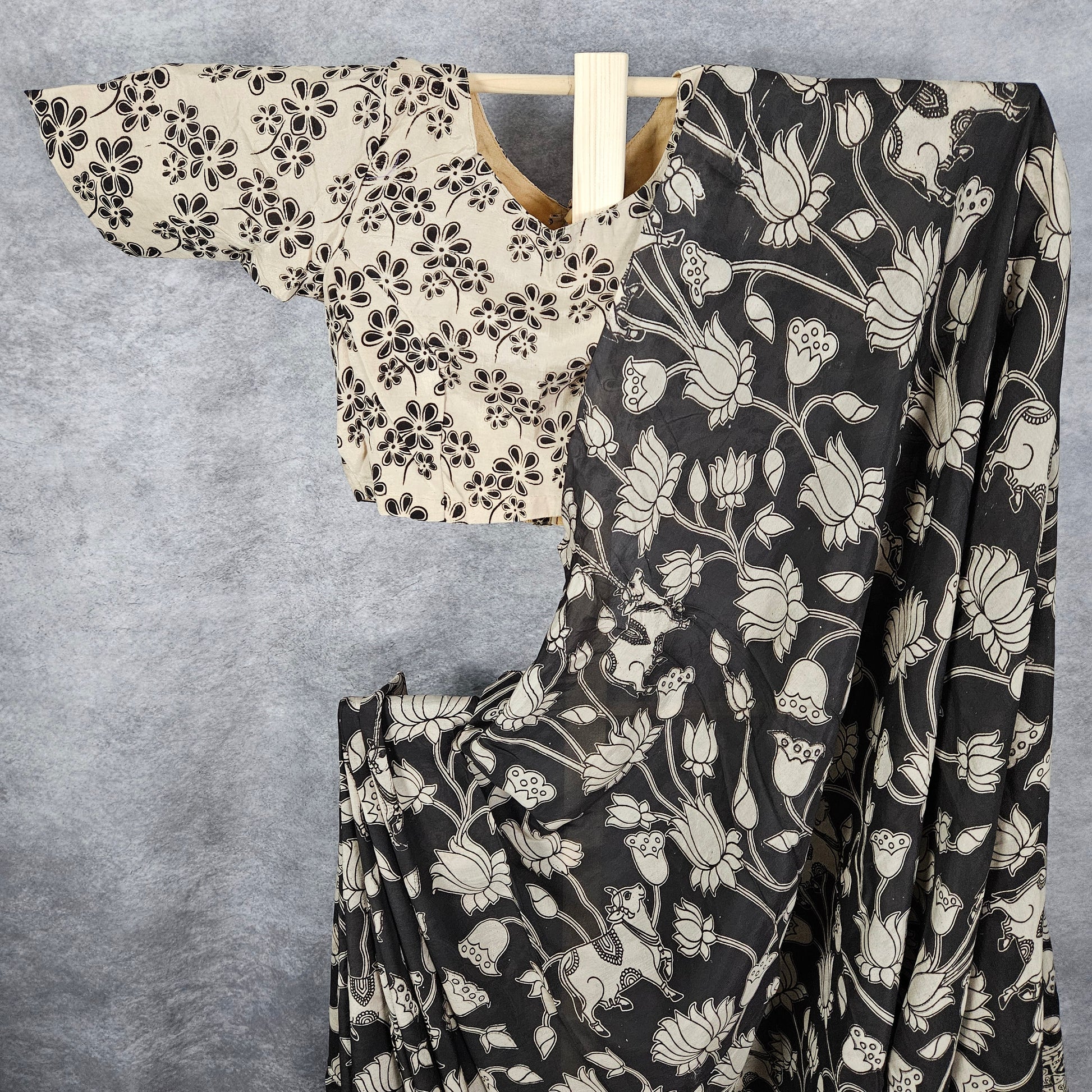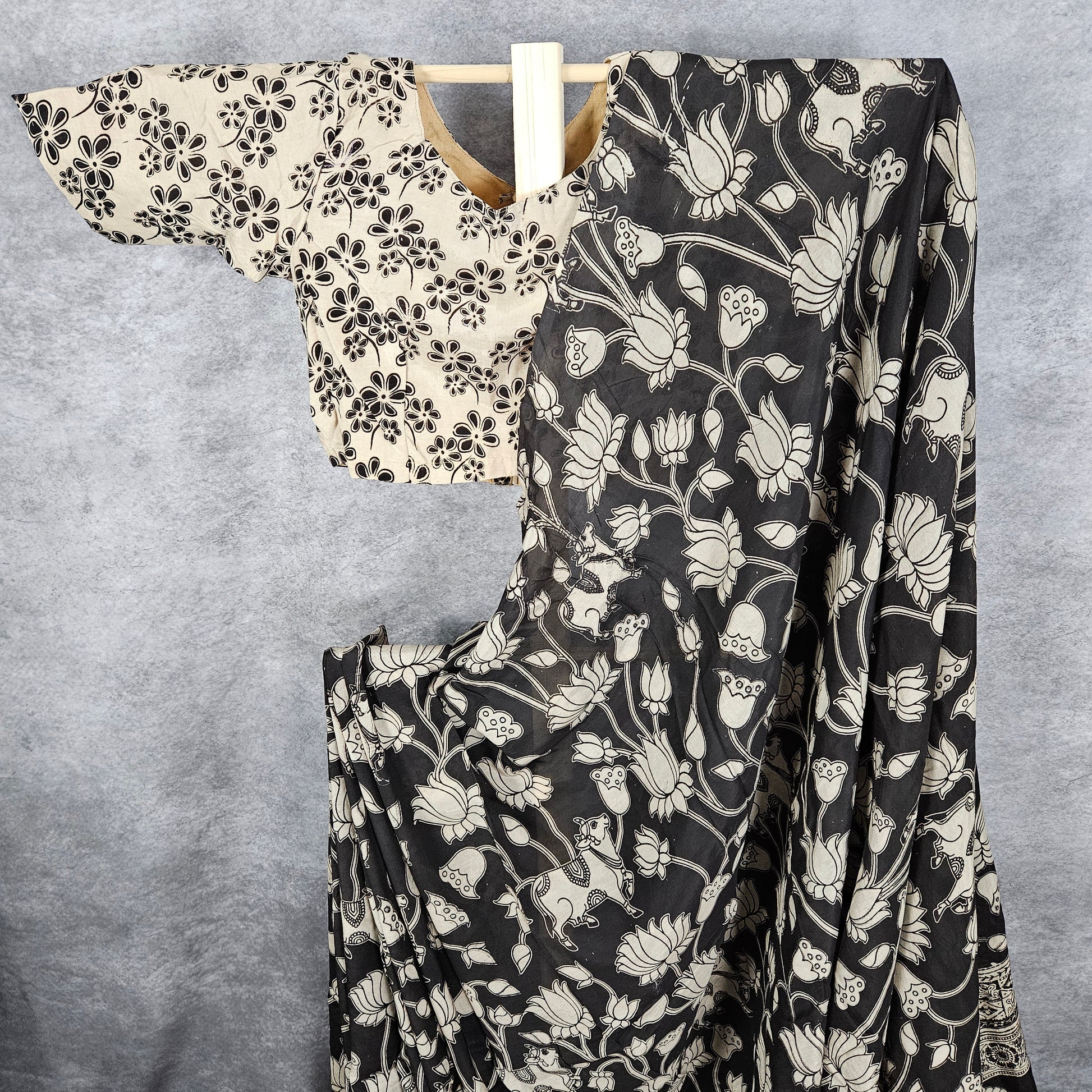 Onyx Black Kalamkari Silk Saree