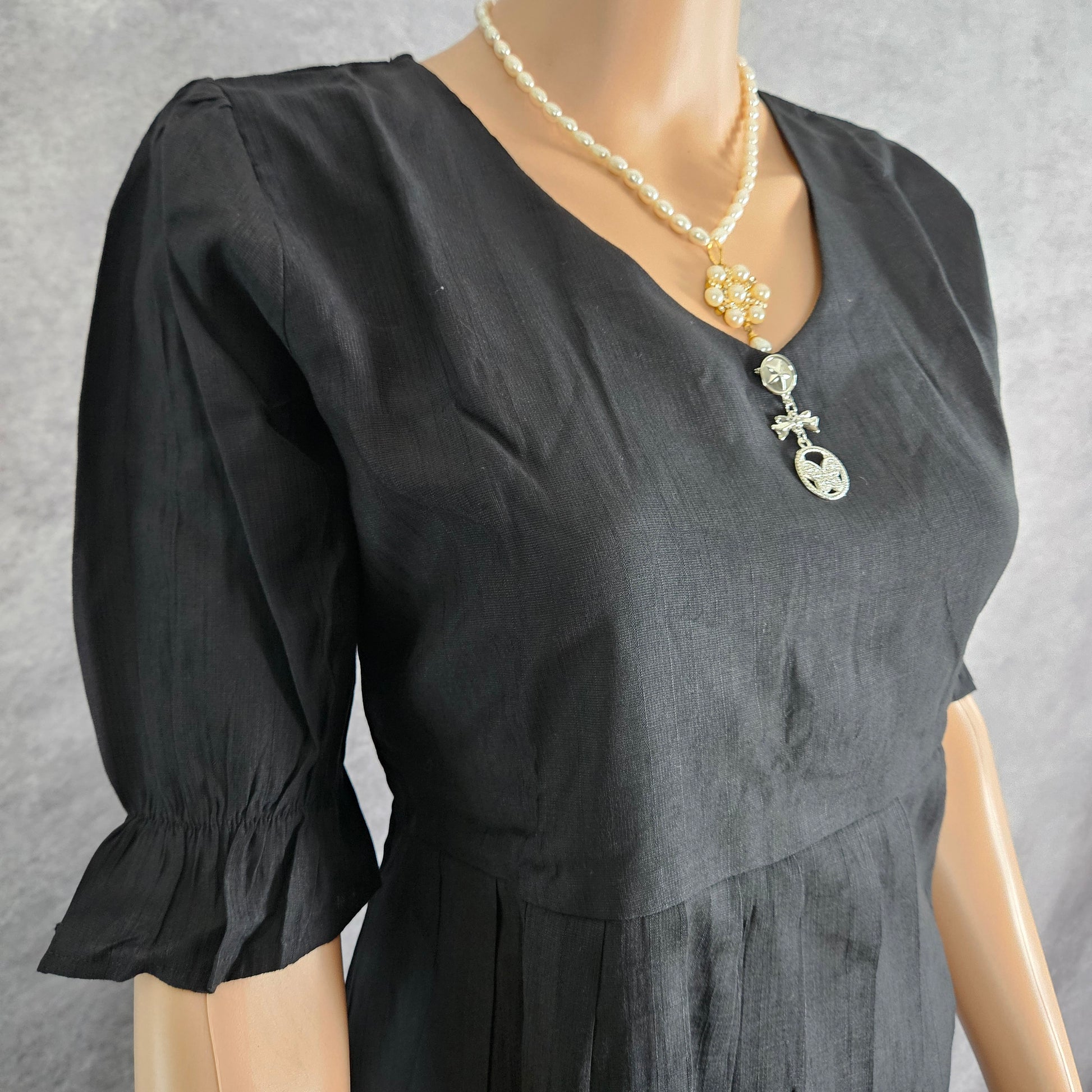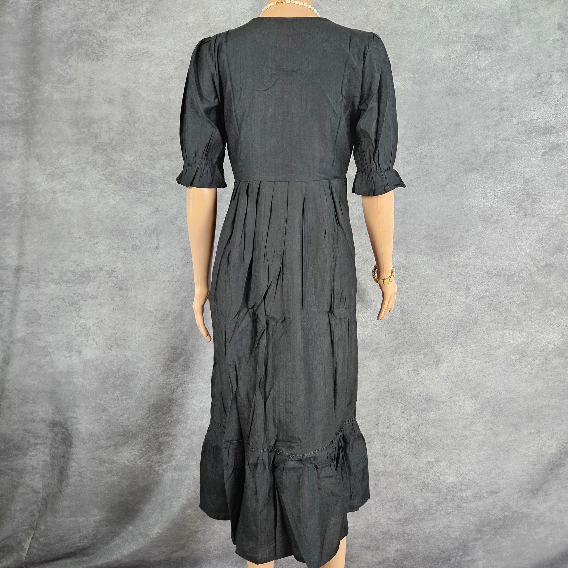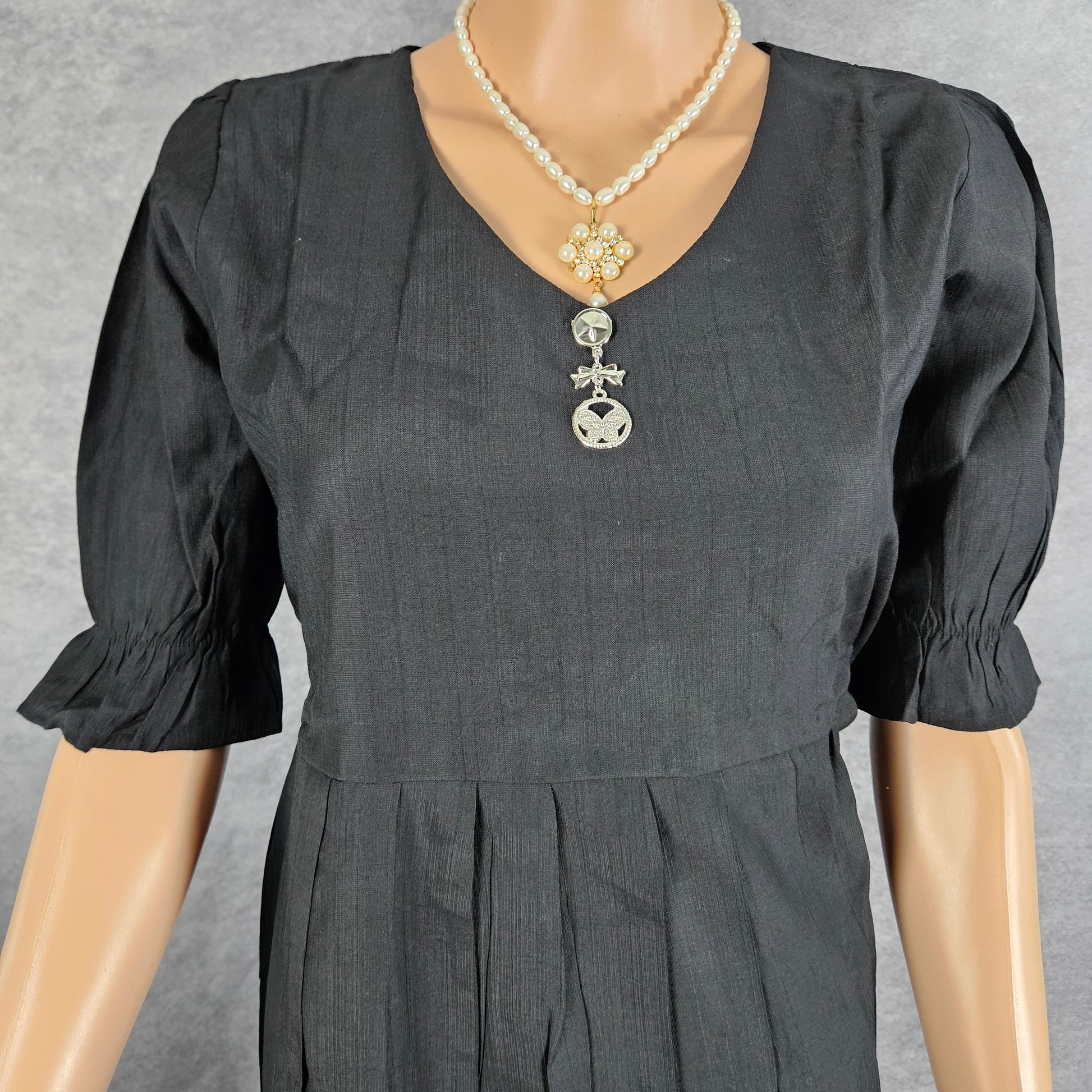 Make a bold statement with the Plain Black Vertical Frock. Its sleek, minimalist design highlights a daring vertical silhouette that elongates and empowers. Perfect for those who command attention with understated confidence, this frock transforms simplicity into a powerful fashion declaration. Step out and own every room with striking elegance.