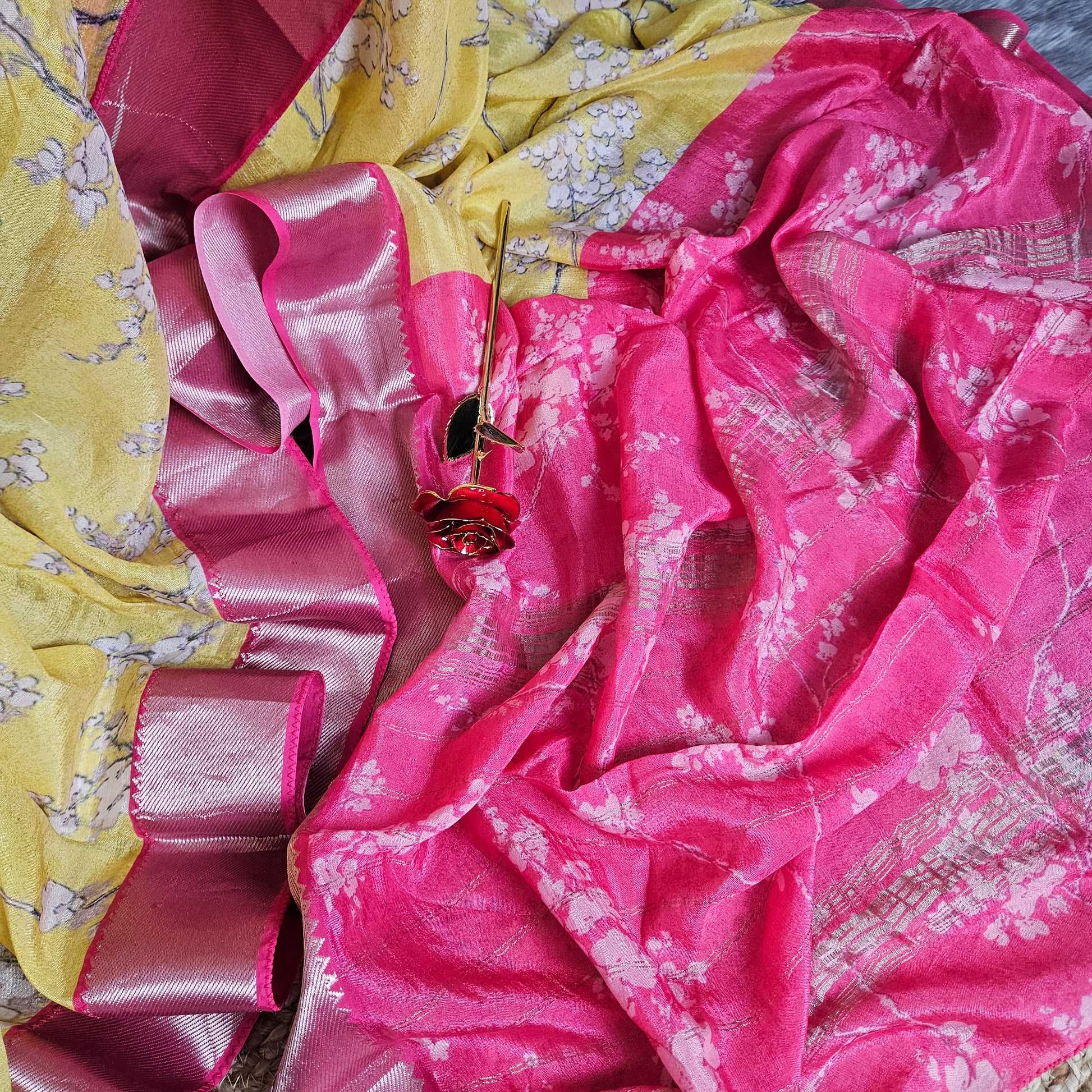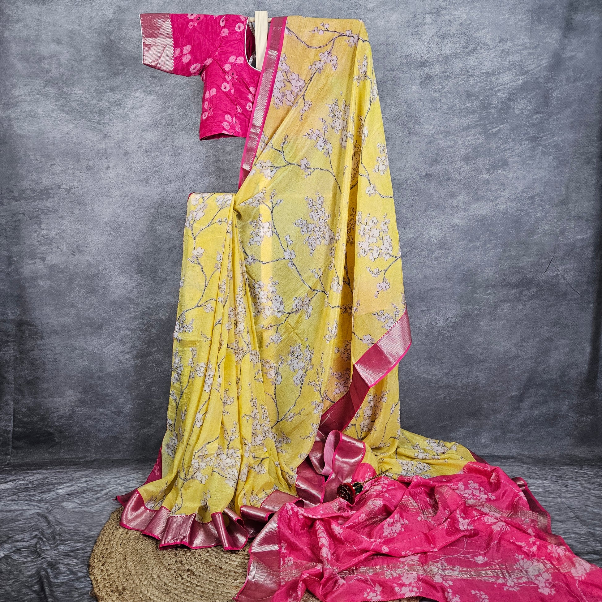 Make a bold statement with the Rosso Corsa Red/Yellow Mangalagiri Saree. Its striking red hue paired with vibrant yellow accents commands attention, while the traditional Mangalagiri weave offers unmatched elegance. Perfect for those who dare to stand out, this saree blends heritage craftsmanship with fearless style, ensuring you captivate every room you enter.