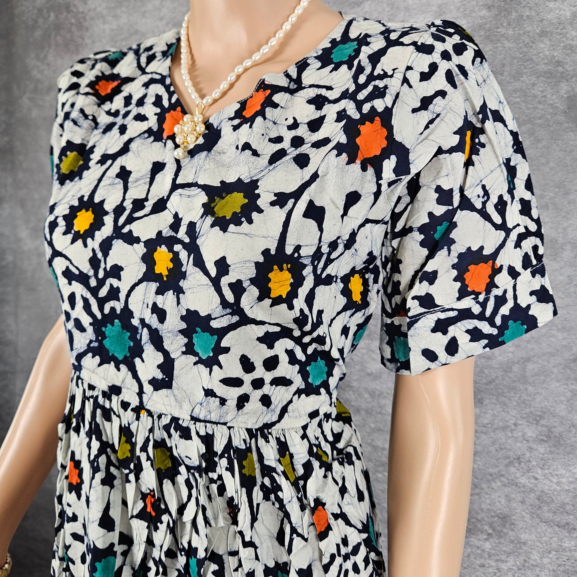Stand out boldly in the White Navy Blue Multi Color Cotton Frock. This striking piece blends classic navy and crisp white with vibrant multicolor accents, crafted from soft cotton for breathable comfort. Its daring design and dynamic color play make it the perfect choice for anyone ready to break the mold and own every room.