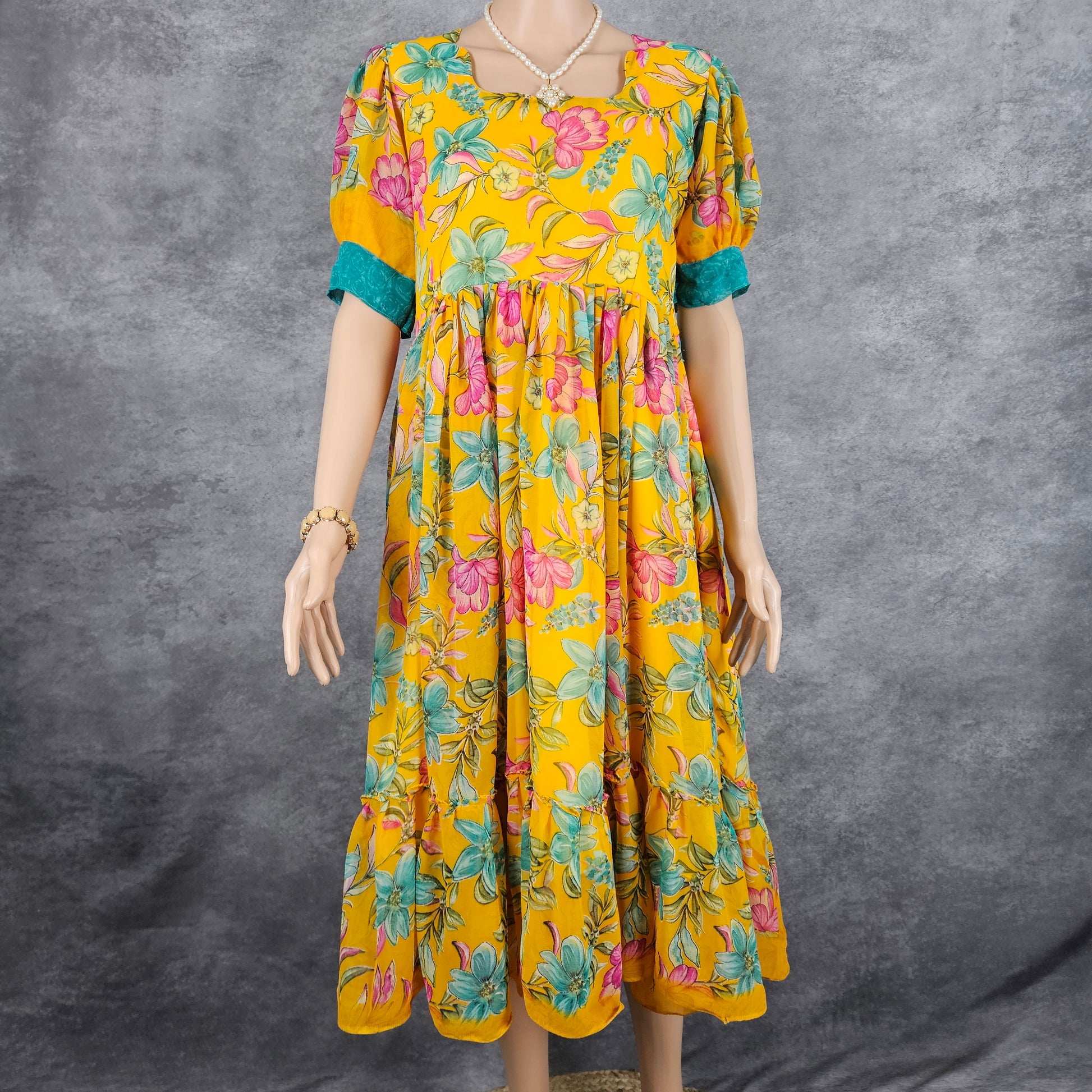 Yellow Splashed Georgette Frock